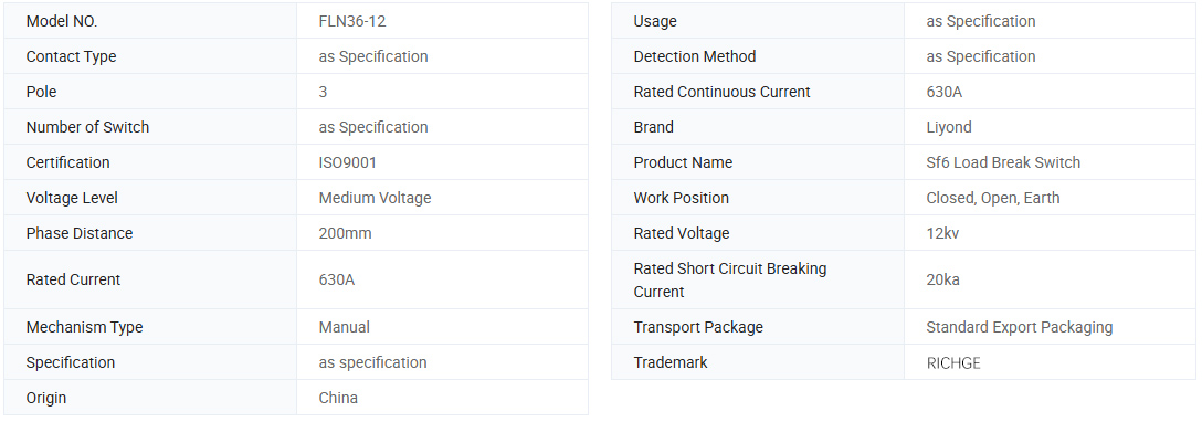 ФЛН36-12КВ СФ6 прекидач за пуњење је опрема за прекидачку опрему за средње напомене опреме, користећи СФ6 гас као АРЦ гашење и изолациони медијум. Постоје три радна места: отворена, затворена, положај Земље у прекидачу. Компактна величина, једноставна инсталација и фина прилагодљивост животној средини чине прекидач погодан за многе различите апликације.