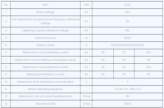 ВСГ-40.5 Сериес Вакуумски прекидач је нова врста трофазне 50Хз према јединственом концепту дизајна и у комбинацији са потражњом и развојем називног напона у затвореном простору 40.5кВ, може се пружити индустријским и рударско предузећима, електрана и подстаницама као контрола и заштите електричне опреме и погодна је за учесталу операцију.