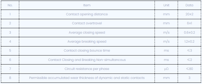 Након подешавања прекидача круга, механички карактеристични параметри су приказани у наставку: