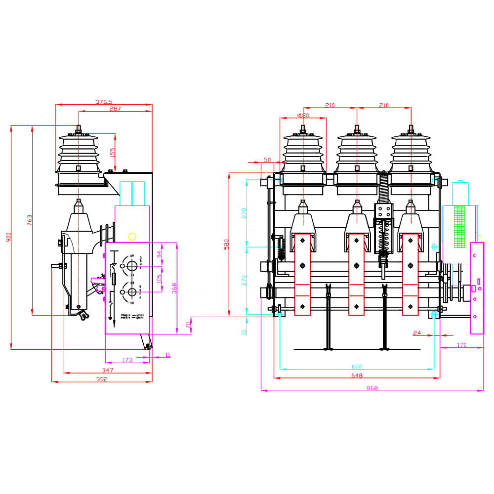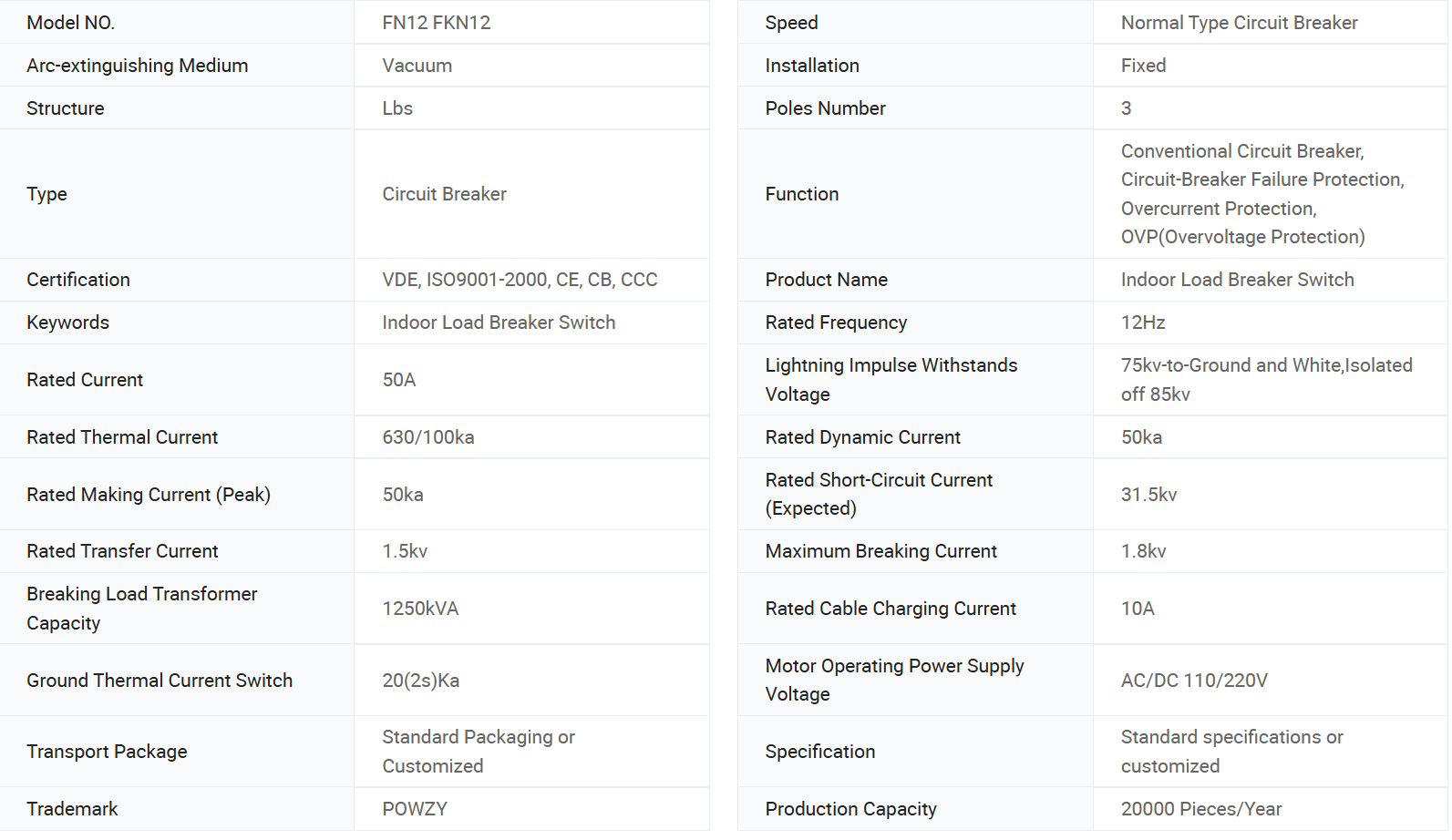 ФКН12-12Д / 630-20 Затворени прекидач високог напона је трофазни високи напон, са називним напоном од 12кВ и називна фреквенција 50Хз. Користи се за пребацивање струје оптерећења, струје затворене петље, без оптерећења трансформатора и струју пуњења кабла, искључено у комбиновану струју кратког споја. Прекидач оптерећења опремљен прекидачем за уземљење може да издржи струју кратког споја.