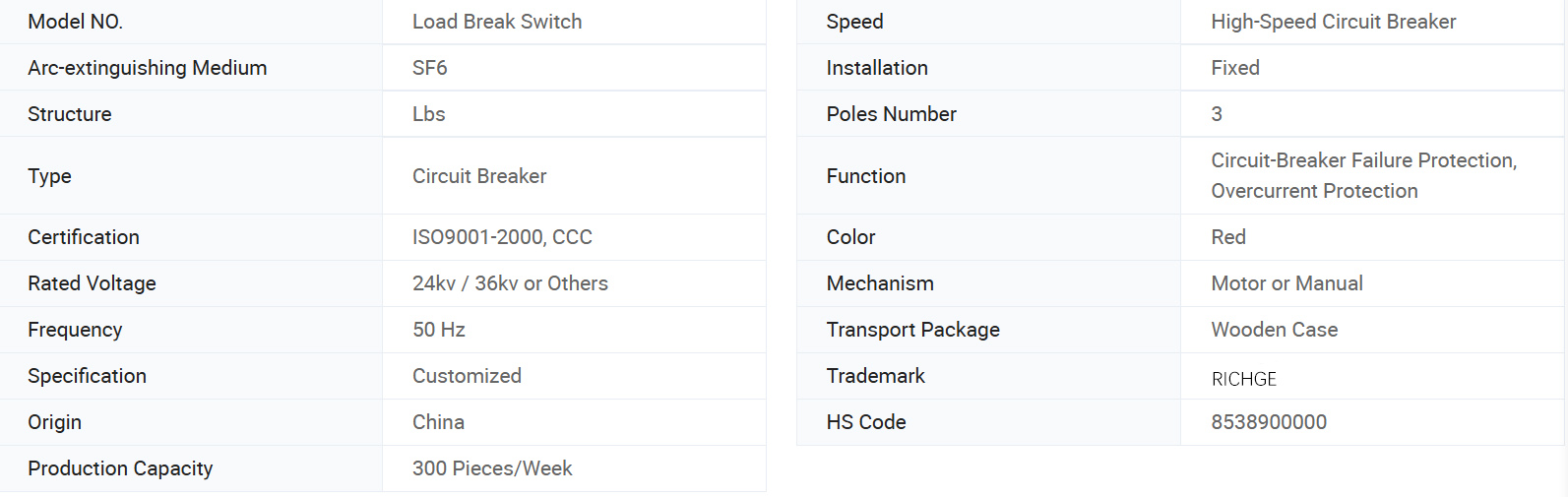 А његови индикатори перформанси задовољавају Национални стандардни ГБ / Т3804-2017 "3.6кВ-40.5кВ прекидач за оптерећење на високом напону", који је главни преклопни елемент главне јединице прстена.