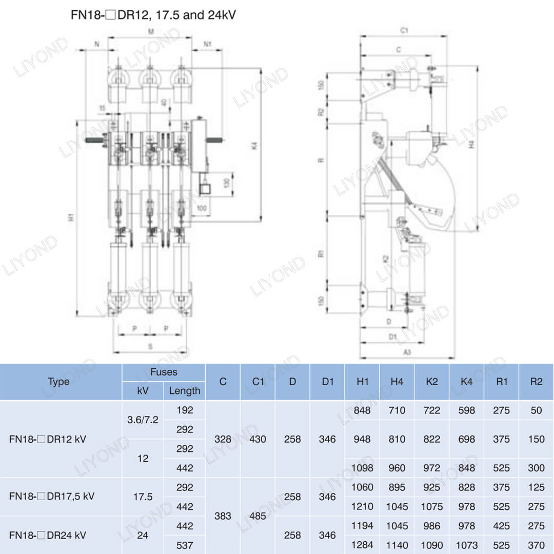ФН18- 口 је општа сврха, трополни, прекидач за пропуст који нуди власнике преклопника и монтира предности напредног технологије прекида и доказане, поуздане перформансе у компактном дизајну. Прекидач је на располагању склопљеним склоповима као грађевински блок за метално приложене и подлоге монтиране преклопне апликације у оцени од 12-40,5 кВ.