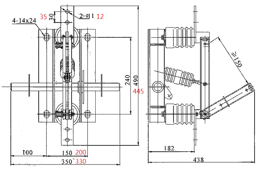 Изолациони прекидач ове серије опремљен је ЦС6-1 ручним управљањем (изолациони прекидач са панелом има свој спојен радни механизам).
