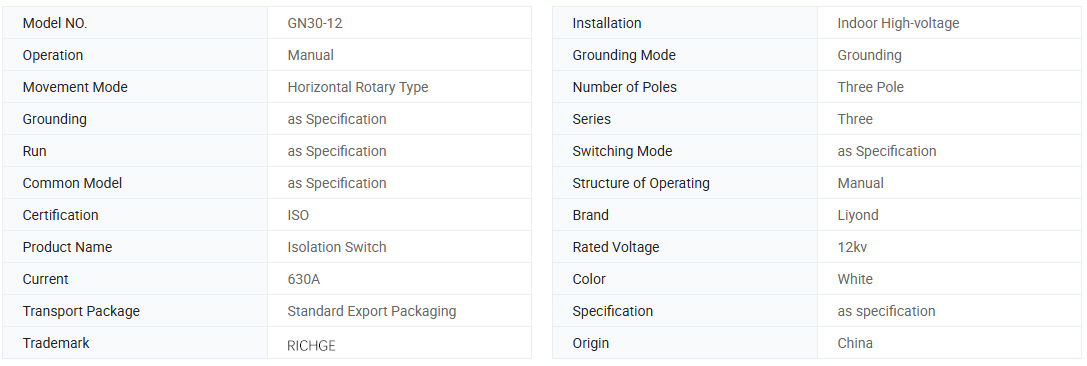 ГН30-12 Затворени ротациони високонапонски диспонТецтор је нови тип са ротацијским ножем. Главна структурална формула је да реши два скупа изолатора и контаката на горњим и нижим авионима тромеселног ниског оквира, реализујући отвор и затварање прекидача ротирањем ножа. ГН3-12Д прекидач додаје облик повезивања ножа на основу ГН30-12 да задовољи потребе различитих електроенергетских система. Овај производ је компактан у дизајну, малим у простору, снажно у изолацији, једноставан за инсталирање и подешавање. Упознаје захтеве "АЦ високоположног прекидача и прекидача за уземљење" и применљиви се на унутрашње системе са називним напоном до 10 кВ АЦ 50 Хз и у наставку. Може се користити као отварање и затварање круга када постоји напон и без оптерећења. Може се користити са високим напонним прекидачем или се може користити самостално.
