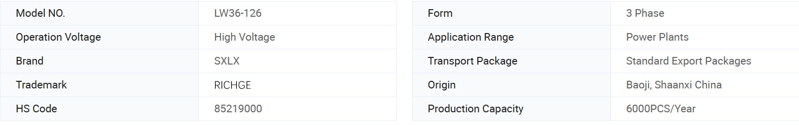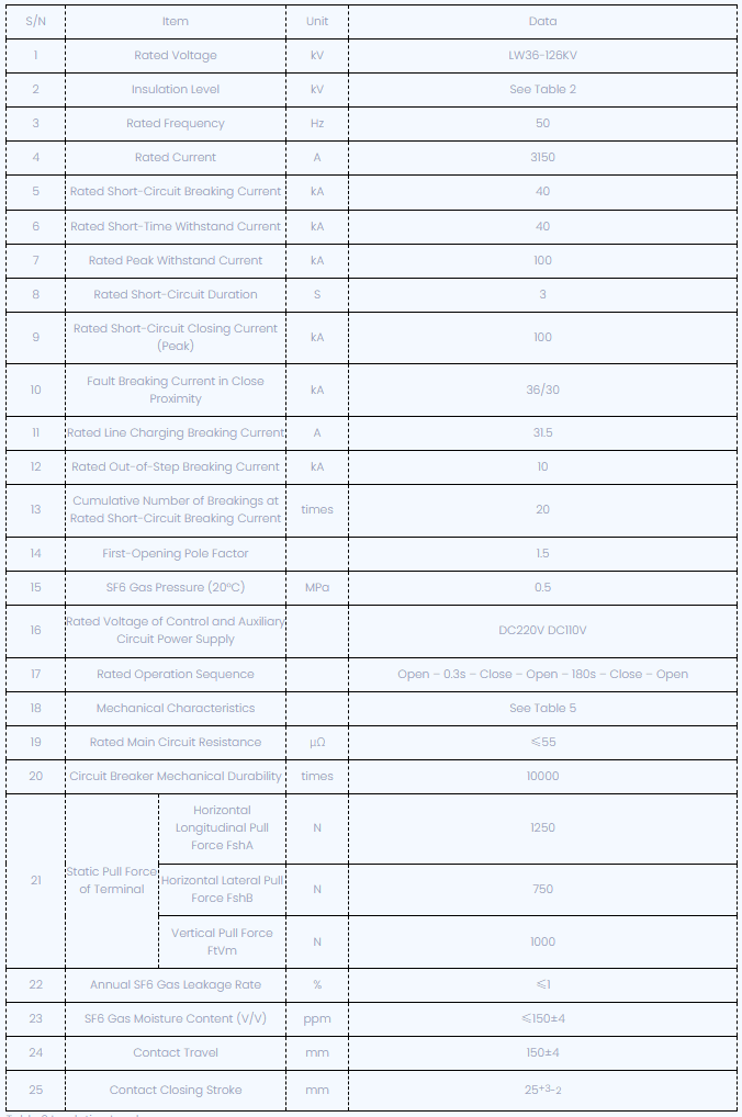Овај производ користи СФ6 гас као и гашење АРЦ-а и изолациони медијум. Опремљен је најновијим само-енергизираним АРЦ технологијом гашења и садржи нови механизам за пролеће. ЛВ36-126 / 3150-40 нуди дуготрајни животни век, низак напор рада, ниску буку и велику поузданост, што га чини најпоузданијим избором за високе површине или 132кВ електроенергетски систем. Такође може заменити увезене производе исте врсте.