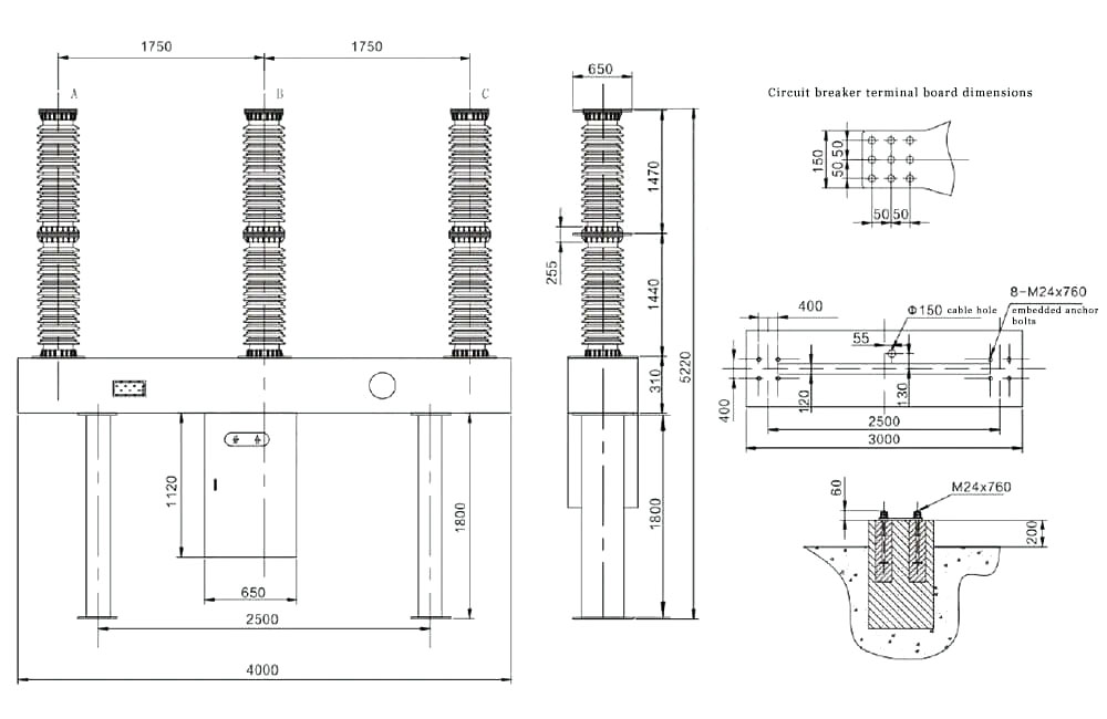 Прекидач усваја трофазни порцуланску колумну једнократну структуру. Три фазе су опремљене опружним оперативним механизмом, који је централно уређен и трофазни рад, тако да је изглед роман и изврстан. Прекидач круга користи СФ6 гас као изолацију и средњи медијум за гашење АРЦ-а. Током рада, повезани су тро-полни СФ6 гас прекидача, а релеј густине у погледу се користи за надгледање напретка притиска и густине. Због принципа гашења самоенергета и оптимизовани дизајн у систему кретања прекидача, механичка ефикасност се ефикасно побољшава и оперативни рад је минимизиран;