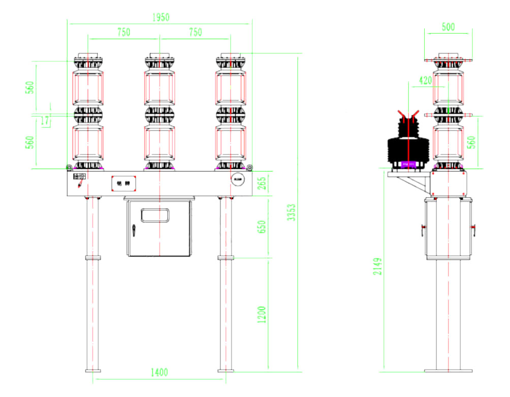 Производ има одличне перформансе прекршаја, користи се гашење гашења ваздуха под притиском, електрични живот је дугачак, не замењује гас сумпор-хексафлуорида, механичка поузданост је велика, механички живот може често да функционише; Сваки сет може бити опремљен са 6-12 тренутним трансформаторима за избор корисника. Овај производ усваја нови МКЗ модел густине поена СФ6, мерач притиска, читање притиска не утиче на промену температуре, једноставан за употребу.