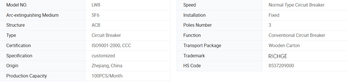 ЛВ8-40.5, ЛВ8А-40.5 Сериес Султур Хекафлуориде прекидачи су трофазни АЦ 50Хз електрична опрема високог напона, погодна за контролу и заштиту система преноса и дистрибуције од 40,5кВ, може се користити и за прекидаче за спајање и затворене кондензаторе. Производ се може користити са пролећним механизмом ЦТ14. Прекидач склопа у складу са Националним стандардом ГБ1984 - 1989 АЦ високоположног прекидача и међународне електротехничке комисије Стандард ИЕЦ56, ИЕЦ6220-100 прекидачем високог напона.