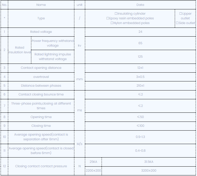 Операција механизам ВБИ-24 бочне монтиране типа ВИцуум Цуркер користи се пролеће до складиштења енергије, која се може управљати са два начина, ручно или електричним. Карактеристике су у складу са ГБ1984-89, ЈБ3855-96<10kv Indoor High Voltage Vacuum Circuit Breaker General Technical Specifications>, Релевантне одредбе ИЕЦ56 стандарда.