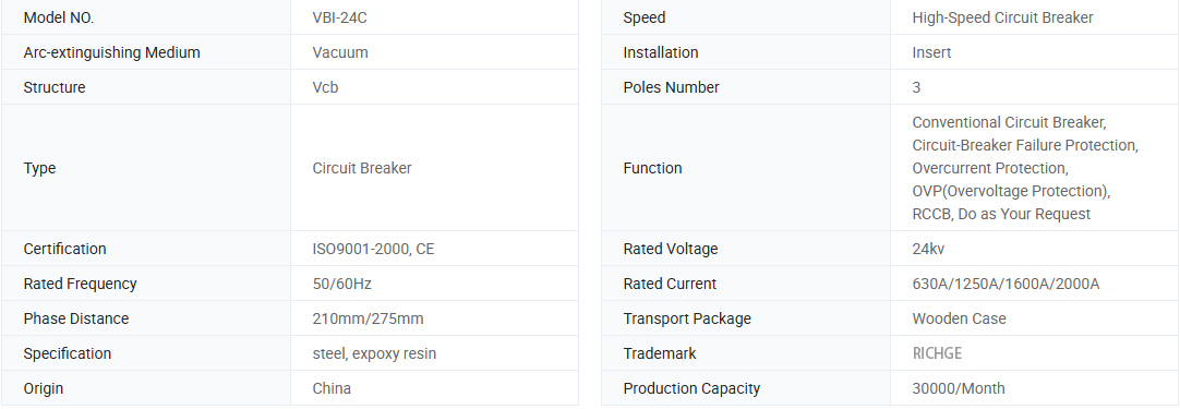 ВБИ-24 Средња напонска вакуумски прекидач је нека врста опреме за средњи звучни напон са 50Хз / 60Хз ТХЕ АЦС 24КВ називни напон, који је комбиновало технологију АББ корпорације у Швајцарској и развијене у Кини. Производ је у складу са стандардом ГБ1984 и ИЕЦ62271-100.