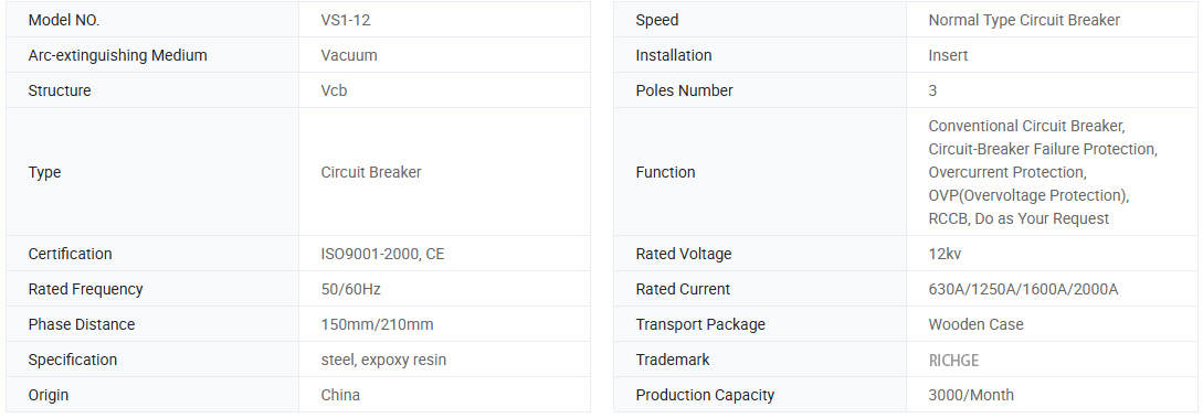 ВС1 (ЗН63А) -12Сериес у затвореном вакуумским прекидачу са заједнички изоловани цилиндар је три фразе А.Ц. 50 Хз Опрема за дистрибуцију електричне енергије 50 Хз са називним напоном од 12кВ. Користи се за заштиту контроле електричне опреме у областима индустрије и рударског предузећа, електрана и трафоста. Овај прекидач вакуумског типа је у складу са националним стандардима и одређивањем ИЕЦ стандарда, способност достиже Стандард ИЕЦ-а, способност достиже Оцена М2-Е2-Ц2.
