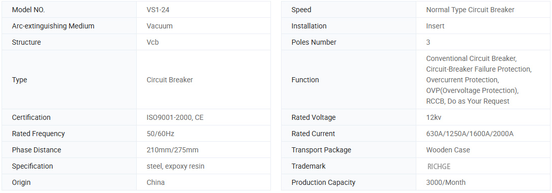 ВС1-24 Серија у затвореном прекидачу високог напона са уобичајеним изолованим цилидом је три фразе А.Ц. 50 Хз Затворене опреме за дистрибуцију електричне енергије са називним напоном од 24кВ. Користи се за заштиту контроле електричне опреме у областима индустрије и рударског предузећа, електрана и трафоста. Овај прекидач вакуумског типа је у складу са националним стандардима и одређивањем ИЕЦ стандарда, способност достиже Стандард ИЕЦ-а, способност достиже Оцена М2-Е2-Ц2.
